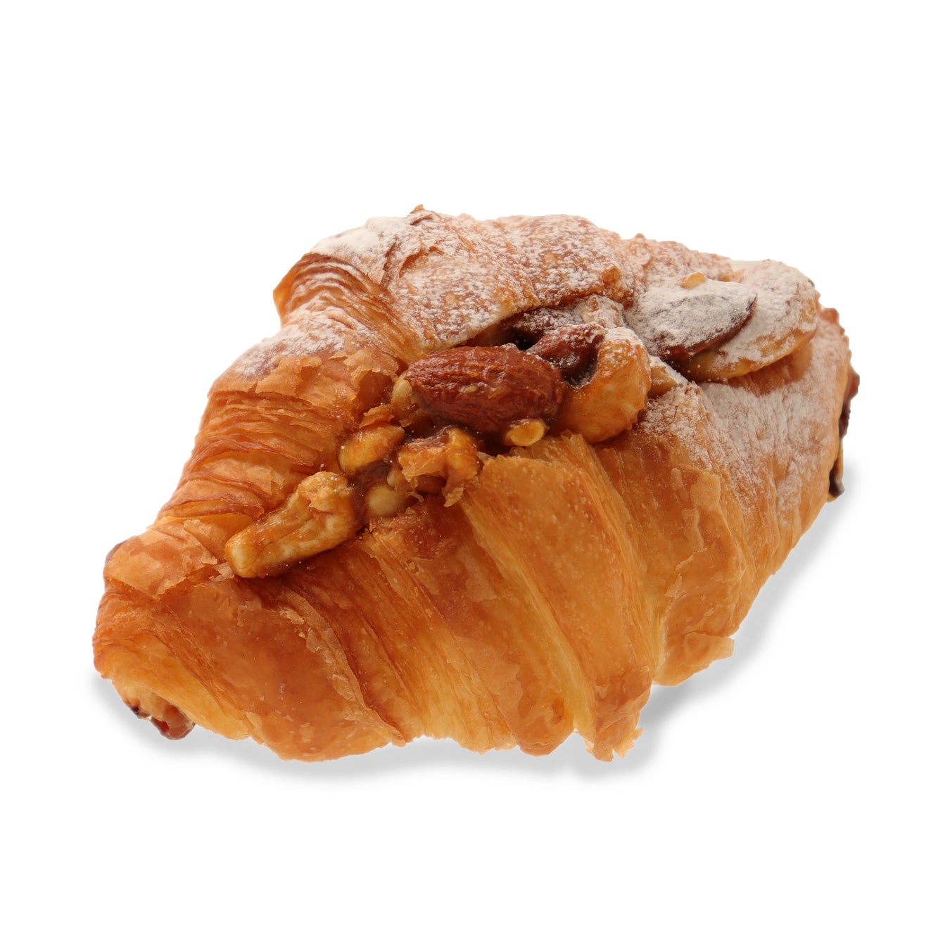 クロワッサンで濃厚な塩キャラメルを包み、キャラメルを絡めたクルミ・カシューナッツ・アーモンドをのせました。