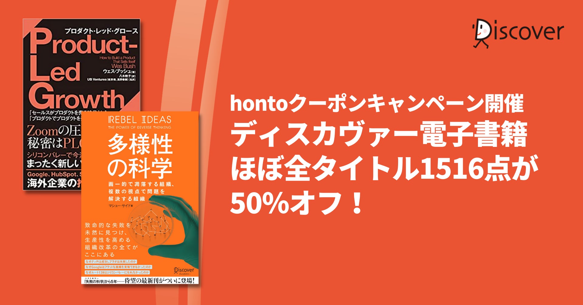 1/18から1/31まで、hontoにて、ディスカヴァーの電子書籍ほぼ全タイトルが50%オフになるクーポンキャンペーンを開催します。