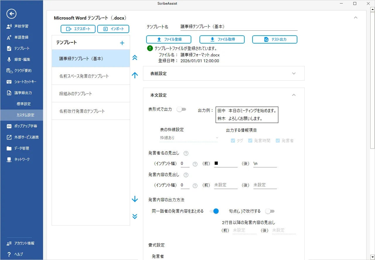 スタンドアローン型AI議事録アプリケーション「ScribeAssist」に「出力テンプレート機能」を追加し、議事録の出力形式を自由にカスタマイズ可能に