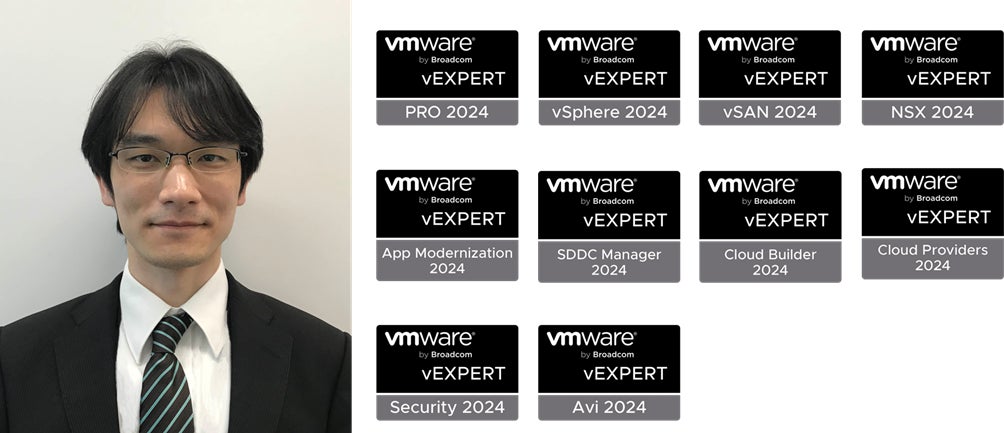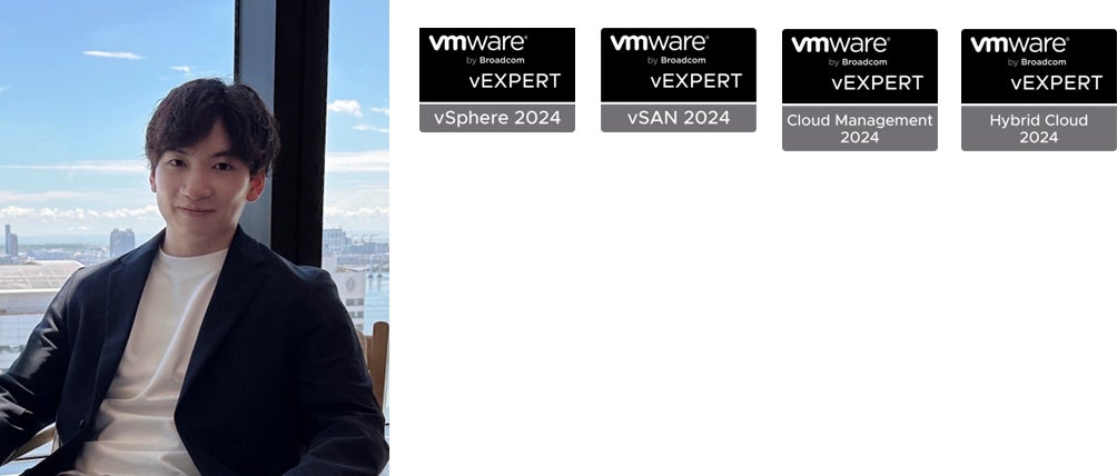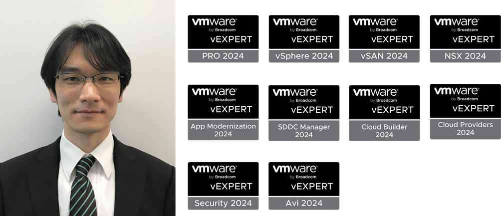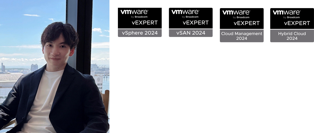 VMwareのインフラ全般を専門としており、コンテナ、ネットワーク、セキュリティー、運用管理といった分野で受賞(vExpert vSphere/vExpert vSAN/vExpert Cloud Builder/vExpert SDDC Manager/vExpert Application Modernization/vExpert Avi/vExpert Cloud Provider/vExpert NSX/vExpert Security/vExpert Pro)