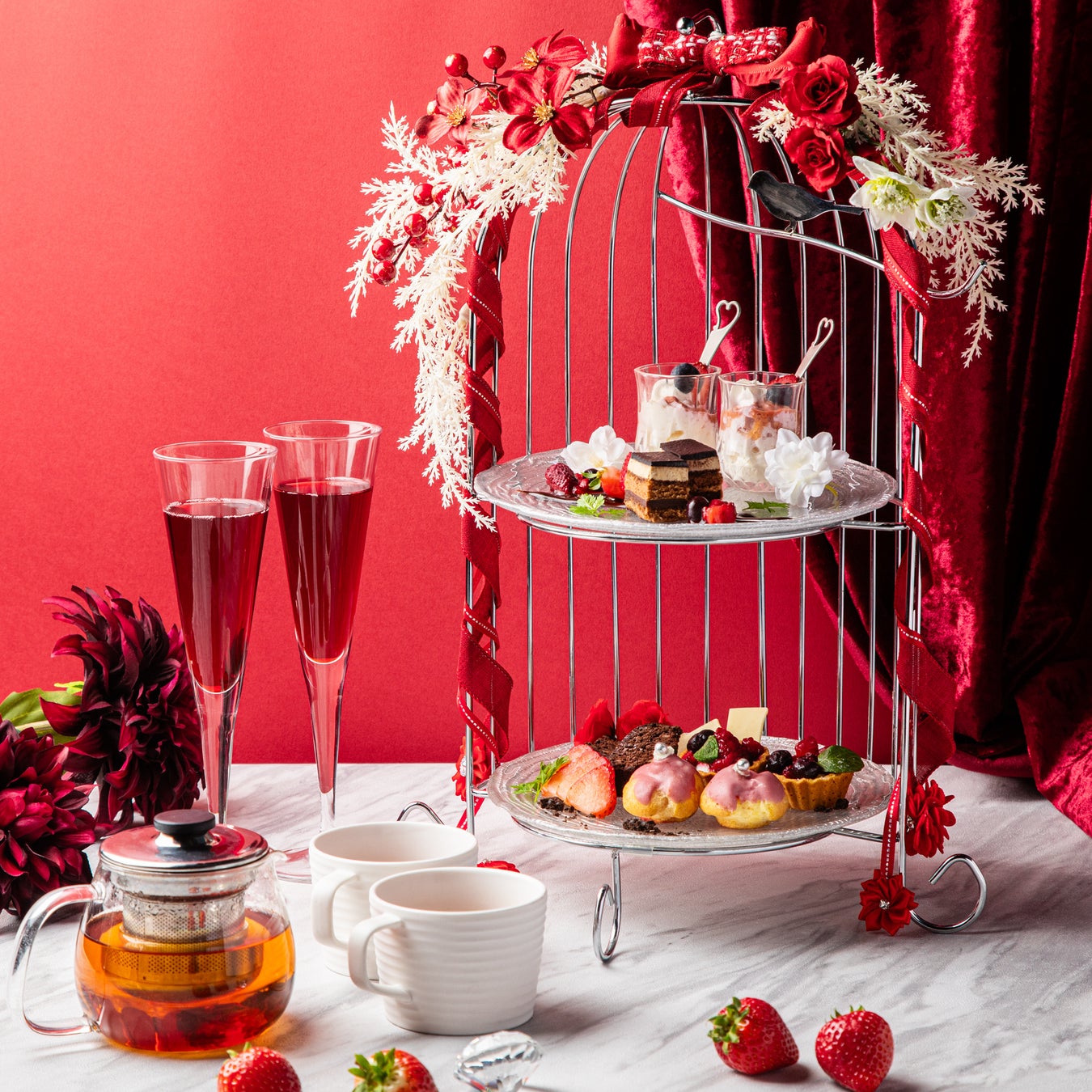 ※Winter Berry Chocolate『いちご&チョコレート』鳥籠2段のドルチェスタンド付き