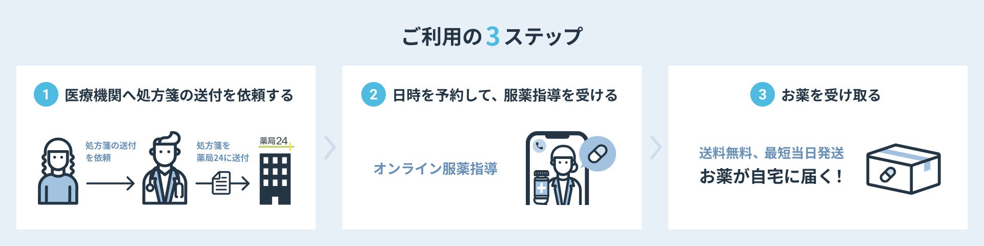 (※1)オンライン服薬指導とお薬配送は、「薬局24」が対応いたします。