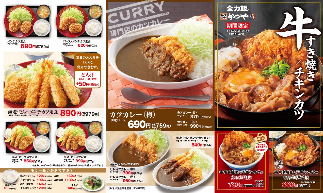 アークランドサービスホールディングス株式会社の⼦会社、とんかつ専⾨店「かつや」を展開している株式会社かつや(本社:東京都千代⽥区/代表:⼤内 勇⼀)は、国内「かつや」にて、期間限定メニュー「牛すき焼きとチキンカツの合い盛り」を2023年2月10日(金)より期間限定で販売いたします。