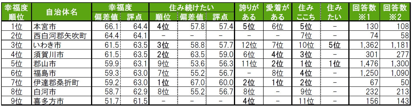 いい部屋ネット「街の幸福度 & 住み続けたい街ランキング2022<福島県版>」(街の住みここちランキング特別集計)発表
