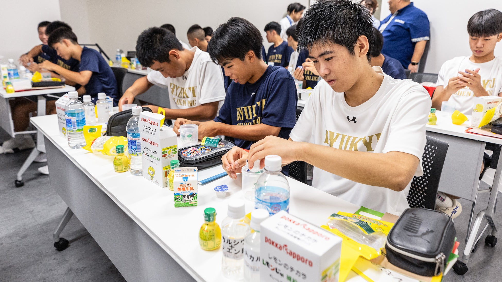 この度キングスU15では、8月3日(土)にキングスのオフィシャルパートナーである沖縄ポッカの協力のもと栄養指導講習を実施しました。
