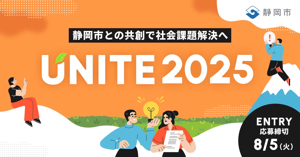共創アイデア募集:8/5(火)まで。 地域とスタートアップが一体となり、課題解決・社会実装を目指します。 https://shizuoka-city.eiicon.net/unite2025/