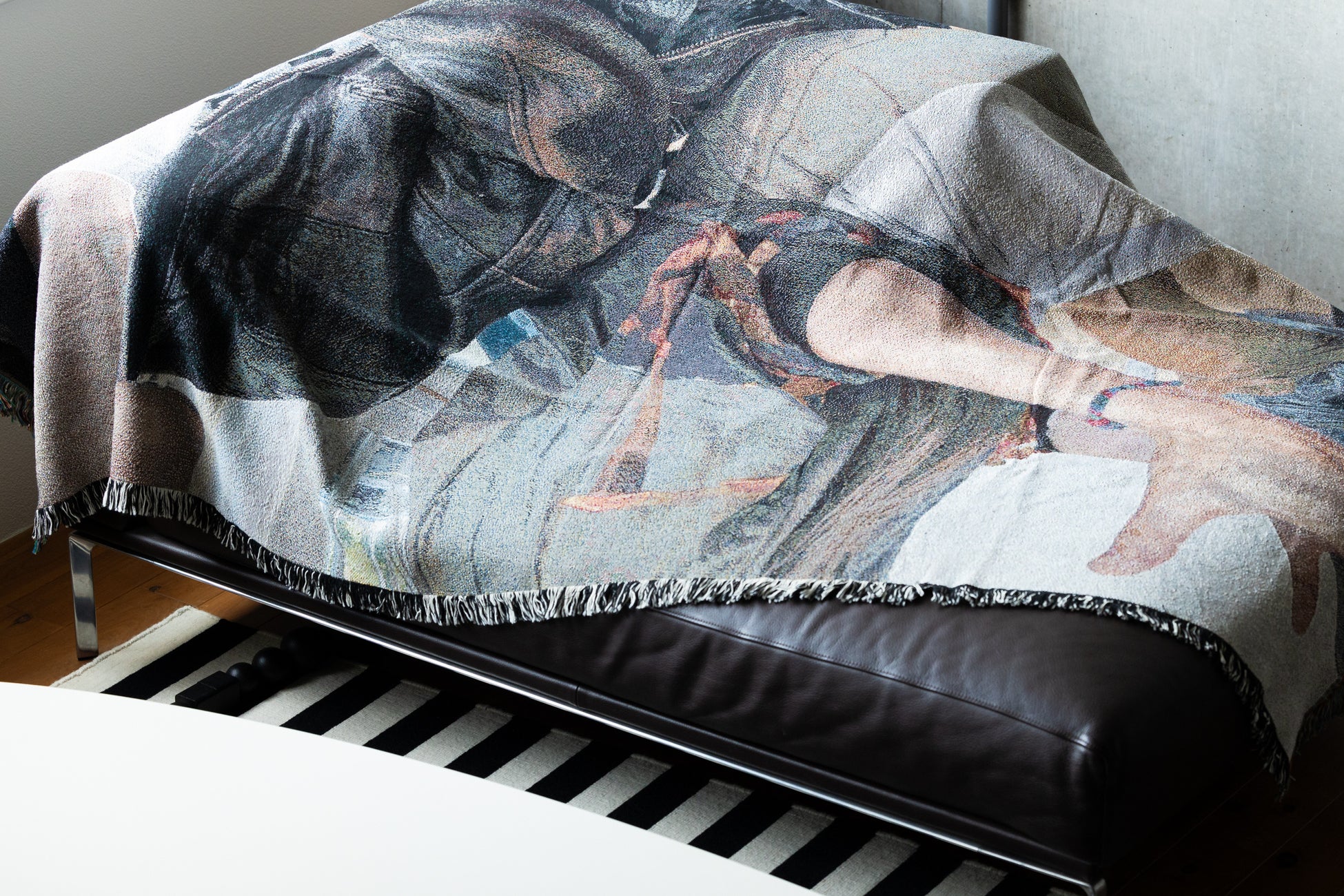 〈Blanket〉のデザインには、建築物や街並み、日常の一瞬を切り取った風景が描かれており、それらを絵画のような美しさと繊細さをもつゴブラン織りで表現。まるでアート作品のような存在感を放ちます。 ブランケットとしてはもちろん、ベッドスプレッドやラグとしても使用可能。その用途の自由さも、〈BLESS〉らしい魅力のひとつです。