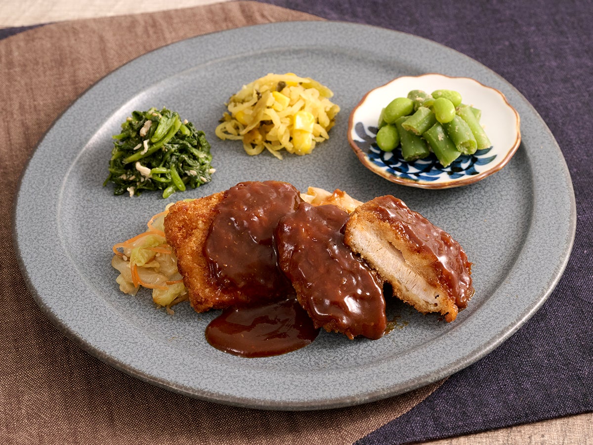 今回新登場する「特製みそカツ」は、甘く香ばしい赤みそだれをベースに、かつお出汁で上品な旨みを重ねた特製みそだれが決めての一品です。ロースカツにじゅわっと染み込み、しっとりとした食感と香ばしさが口いっぱいに広がります。添え野菜はキャベツとにんじんを合わせ、やさしい旨みを全体にまとわせました。みそだれをたっぷりかけて、カツ、野菜を一緒にお召し上がりいただくのがおすすめです。
