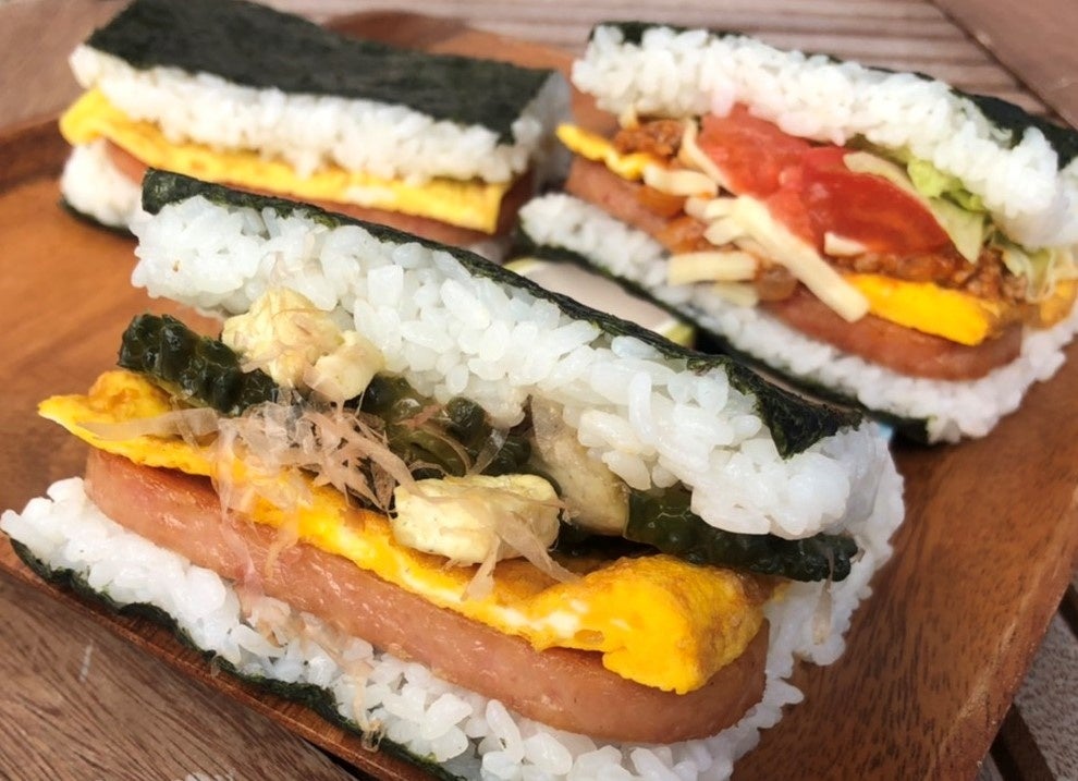 沖縄版おにぎらず「おにポー」。具材もいろいろ。