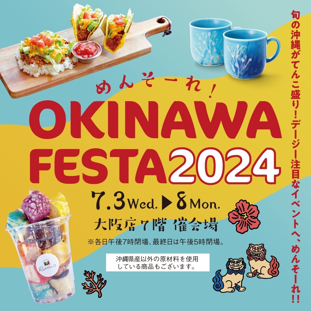 【大阪高島屋】7月3日(水)から開催!『めんそーれ!OKINAWA FESTA 2024』夏を楽しむ!沖縄の“今”注目の「くわっちー(ごちそう)」から「すがい(服装)」まで。