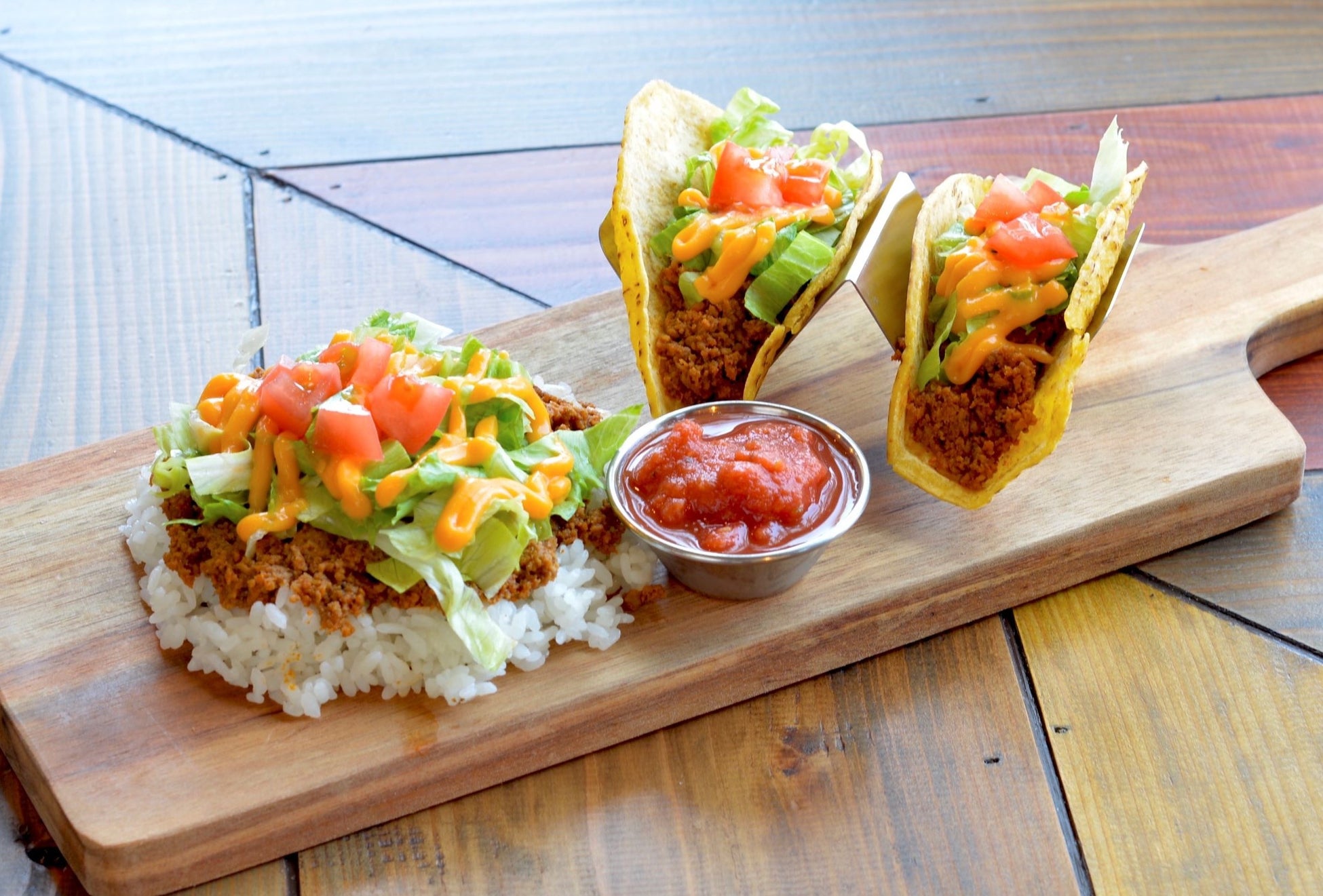 <タコライス cafeきじむなぁ>タコス&タコライス(1人前)1,351円 ※イートイン