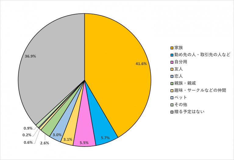 次いで、「勤め先の人・取引先の人など」で5.7%、「自分用」で5.5%となりました。
