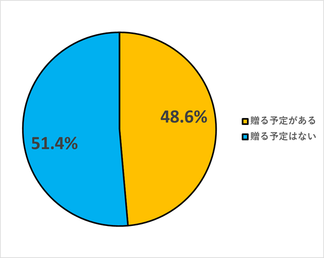 「贈る予定がある」と回答された方は、「48.6%」でした。全体のおよそ半分の人がバレンタインに贈る相手がいるようです。