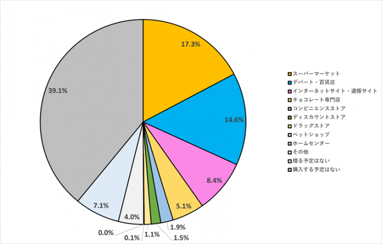 質問:今年のバレンタインに贈るものはどこで購入する予定ですか?