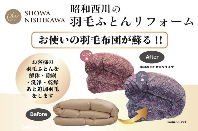 昭和西川「羽毛ふとんリフォーム」全国のヤマダデンキ LIFE SELECT 店 にて受付開始