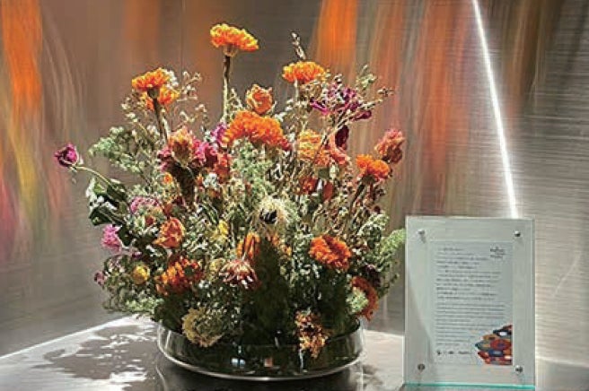 ワークショップは、日本サステナブルフラワー協会から講師を招き、フラワーロスについて座学を行い、回収した祝花を使って「キーホルダー」や「ポプリ」を作成しました。