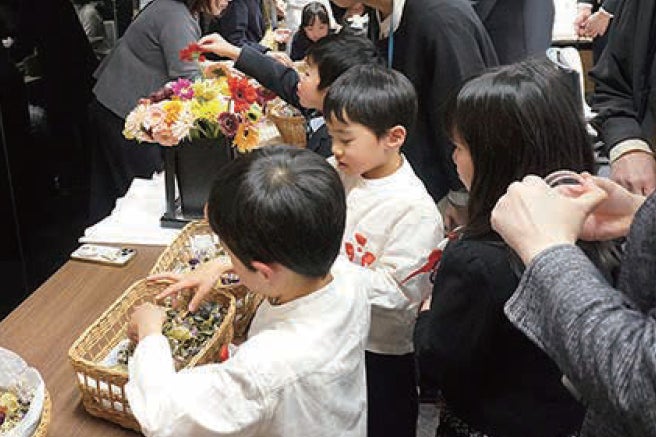 ソニー銀行では、特別協賛をした「ソニー銀行 presents LiSA LiVE is Smile Always~COCKTAIL PARTY~[SWEET&SOUR]」にて回収した花を再活用し、内幸町本社と、2025年1月に営業開始した大阪・梅田にある西日本ローン事業部のオフィスエントランスへの装飾として設置したほか、4月に新一年生となる社員の子どもたちを対象に親子で楽しむ社内のワークショップを実施しました。
