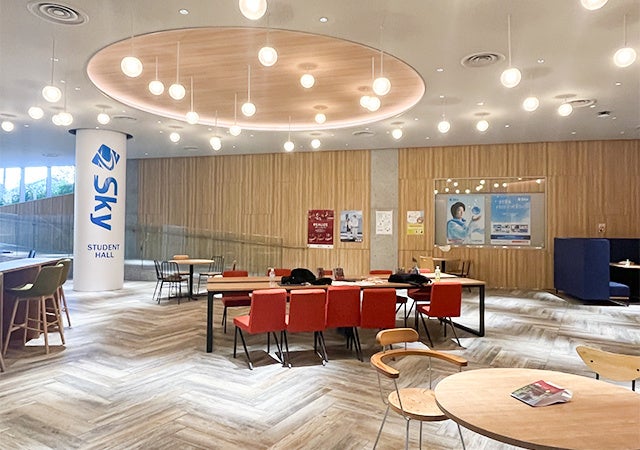 対象施設は、天白キャンパス研究実験棟Ⅲ B1F 学生ホール(以下、「本施設」)で、2023年11月1日から2026年10月31日まで本施設の愛称は「Sky STUDENT HALL」となります。名城大学における初めてのネーミングライツ施設になります。