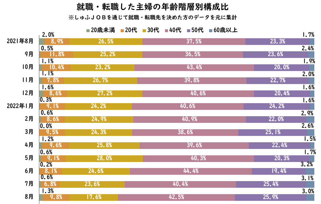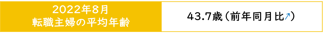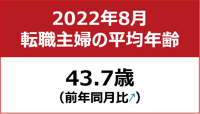 【転職主婦の平均年齢調査 2022年8月】43.7歳(前年同月比+1.5歳)