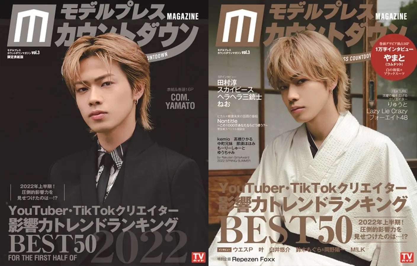 人気YouTuberグループ「コムドット」のやまとさんがランキングを席巻!表紙を飾った『モデルプレスカウントダウンマガジン vol.3』が予約販売で通販TOP3を独占 ~honto週間ランキング発表~