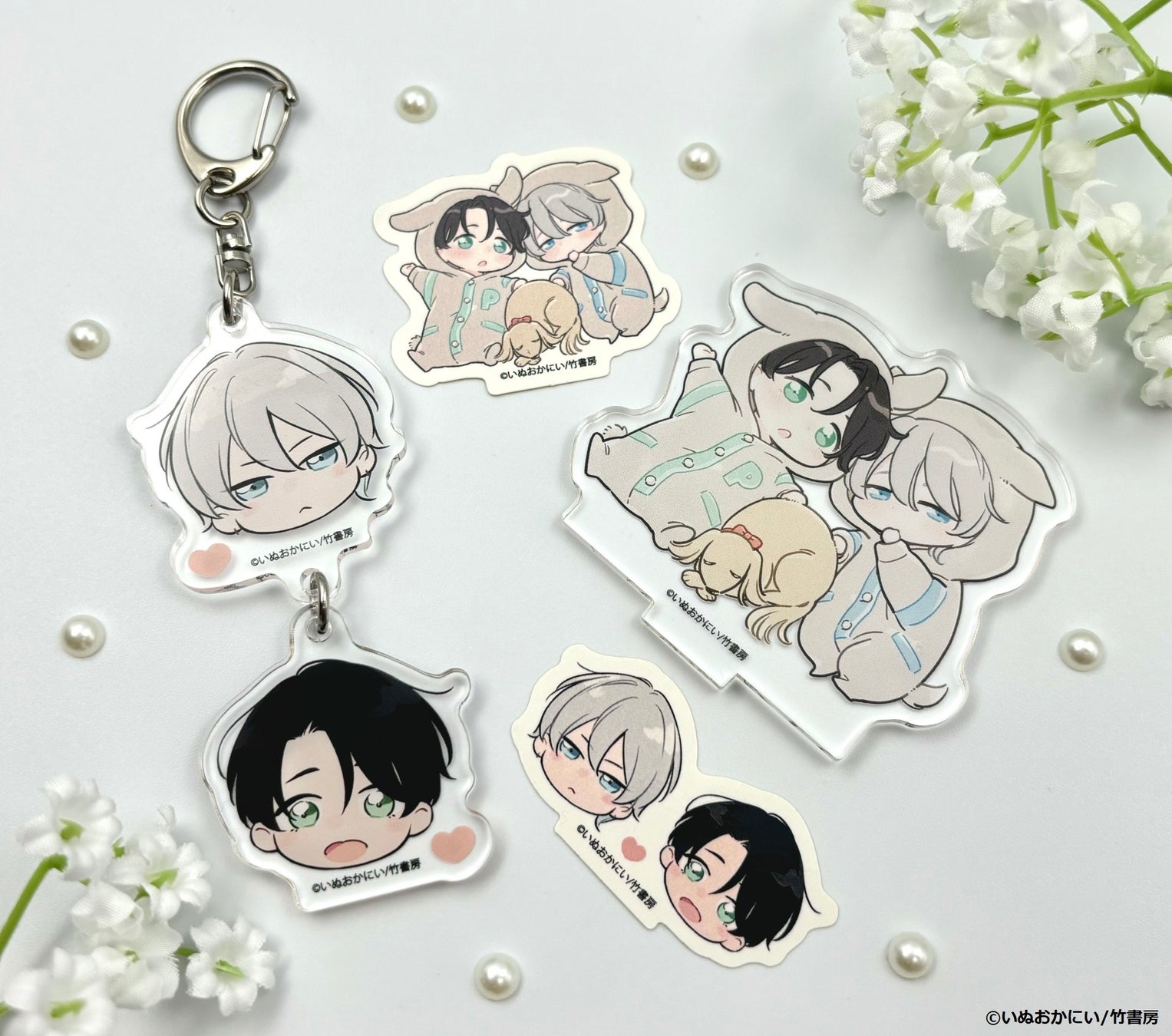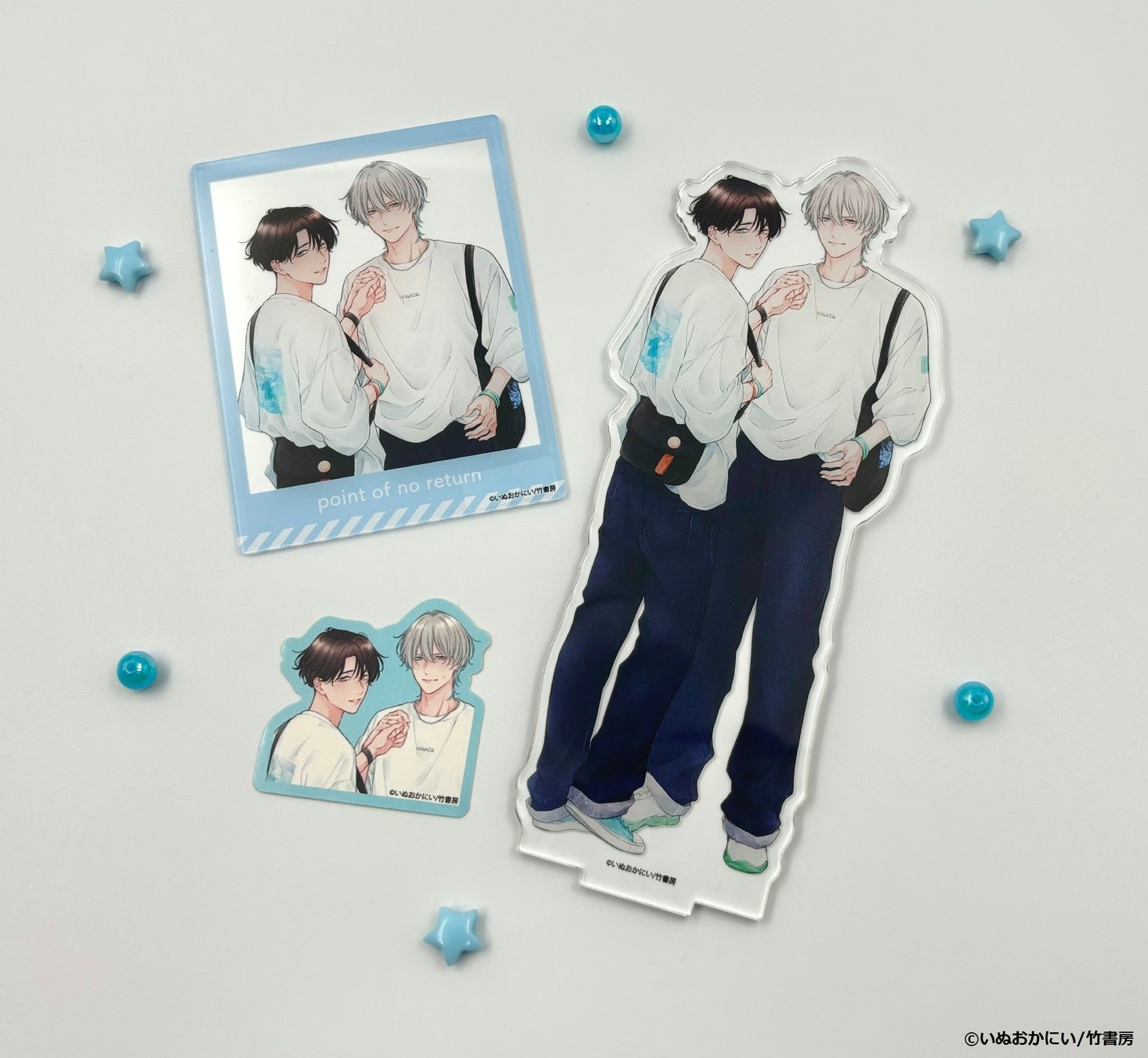 「いぬおかにい Collection」と題し、ぴゅあっぴゅあなアオハルBL『ポイントオブノーリターン』の描き下ろし&公式イラストを使用した新作グッズが登場!