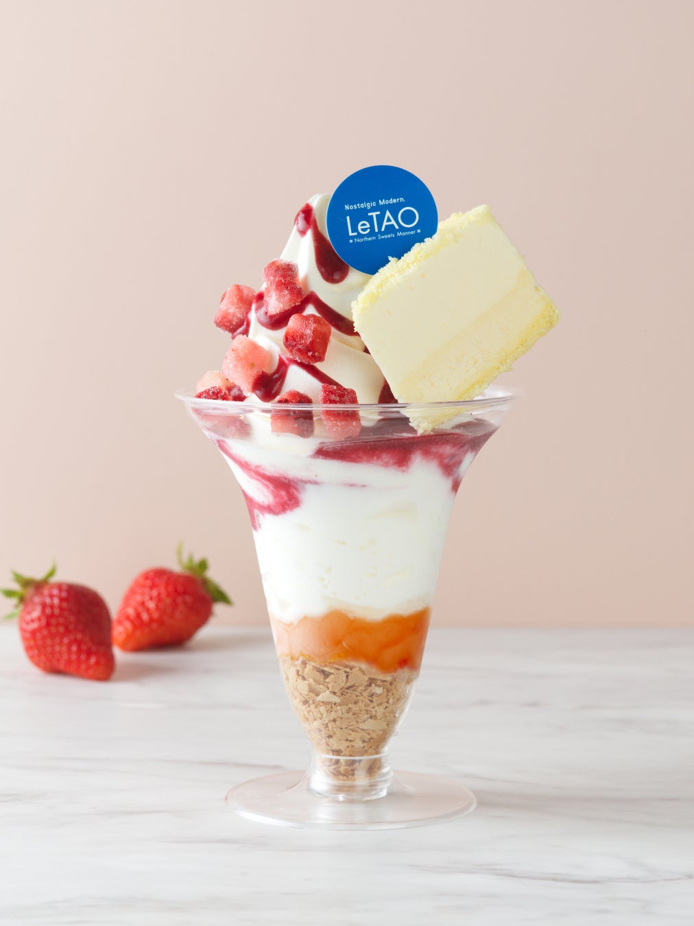 一番人気「ドゥーブルフロマージュ」、オリジナルソフトクリーム「クレームグラッセ」を使用した、ふわもこムースが主役のルタオならではのパルフェです。