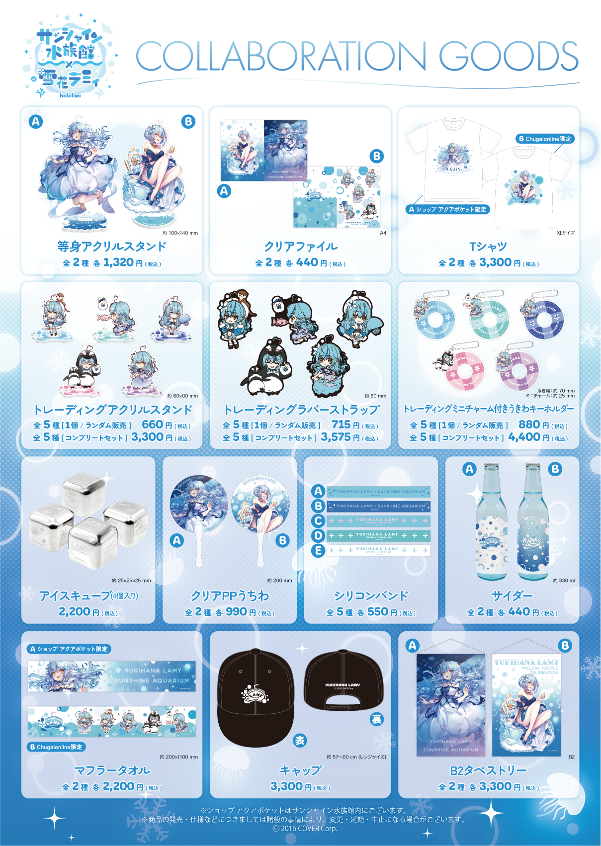 ※TシャツA・マフラータオルAは「ショップ アクアポケット」限定、TシャツB・マフラータオルBは「Chugaionline」限定販売になります。