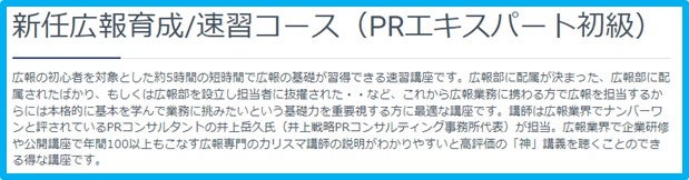 【広報配属者が、まず初めに受講する講座が大人気!】広報パーソンに朗報!広報の基礎知識が最短1日(5時間)で完全マスターできると評判!日本広報教育センター「新任広報育成講座 速習コース」キャンペーン開催