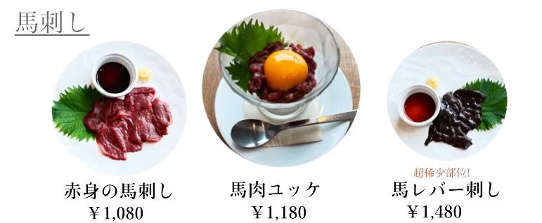 特に刺身で食べられる馬のレバーは1頭からわずかしか取れない希少部位で、牛や豚のレバーとは違い、臭みがなく、なめらかな舌触りと甘味があるのでタレとの相性も抜群です。