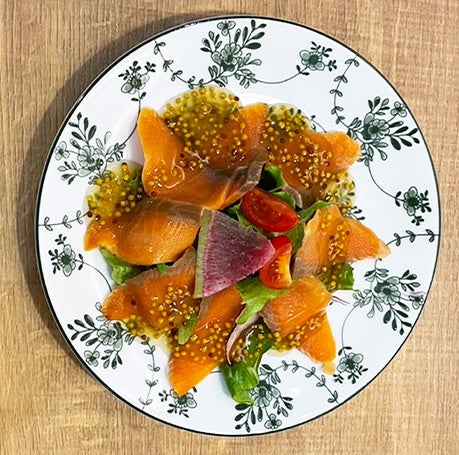 スモークサーモンのハニーマスタードカルパッチョ 880円