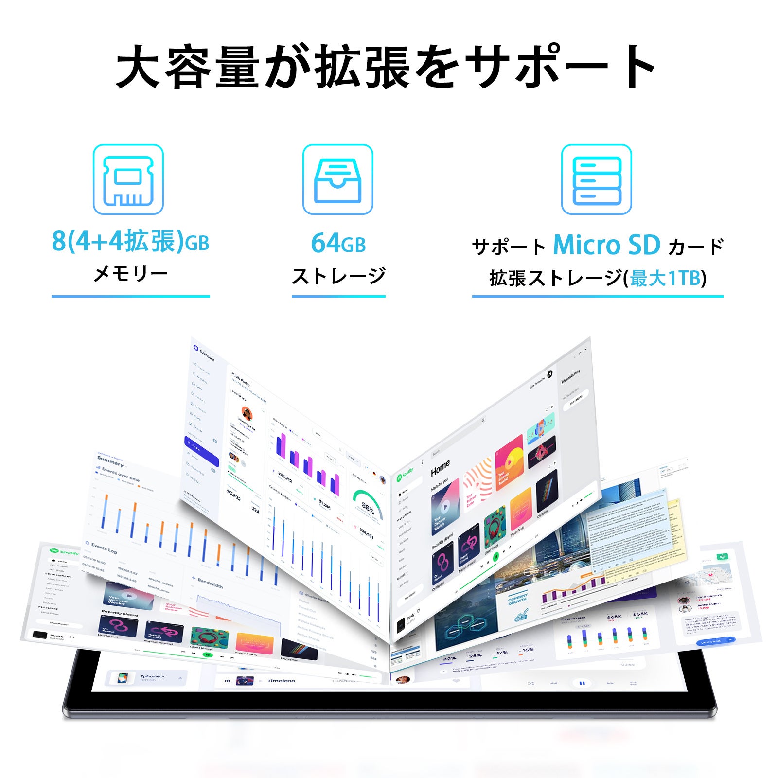 8GB(4GB+4GB 拡張)RAM+64GB ROM+1TB拡張可能