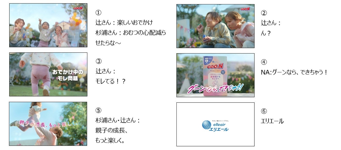 「グーン モレ0(ゼロ)へ」シリーズは、「想定外のハプニング」や「パパ・ママの困った!」といったおむつ替えの負担を軽減することで、心にゆとりをもたらします。そのゆとりが、赤ちゃんの小さな成長を見逃さず、親子の時間をもっと楽しくしてくれる――。本CMは、そんな「グーンなら、できちゃう!」世界観を表現しています。