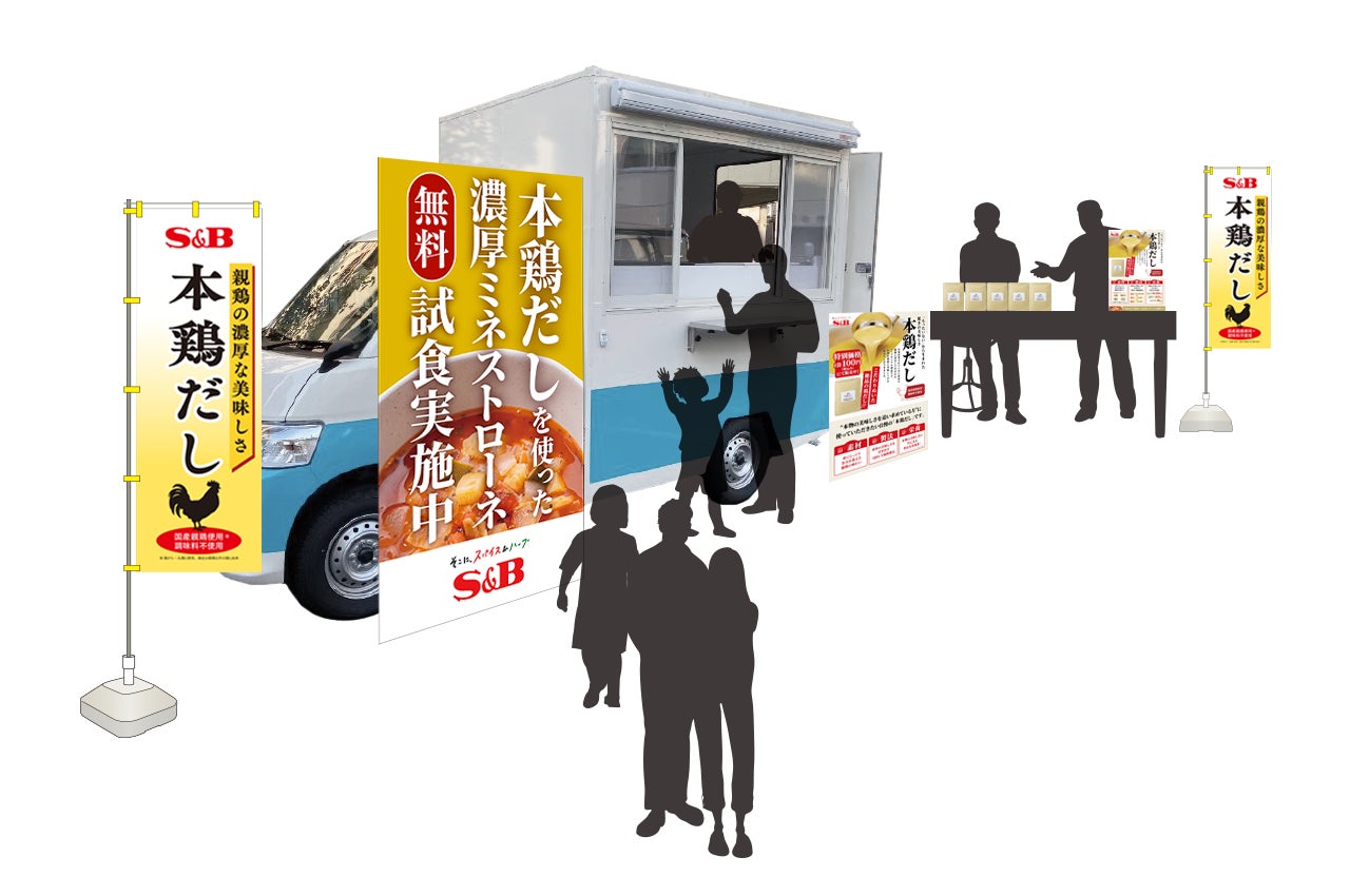 本イベントでは、キッチンカーによる試食提供と、エスビー食品公式通販サイトで販売している「本鶏だし」の特別販売を実施します。試食を通じて、「本鶏だし」の濃厚な味わいと旨みを体感いただくとともに、いつもの料理を手軽に底上げできる本品の魅力をお伝えします。