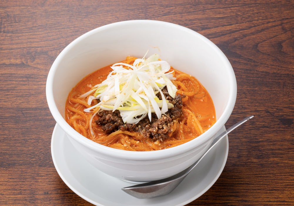 うしはちオリジナルの濃厚な坦々スープをのど越しの良い冷麺と組み合わせました。