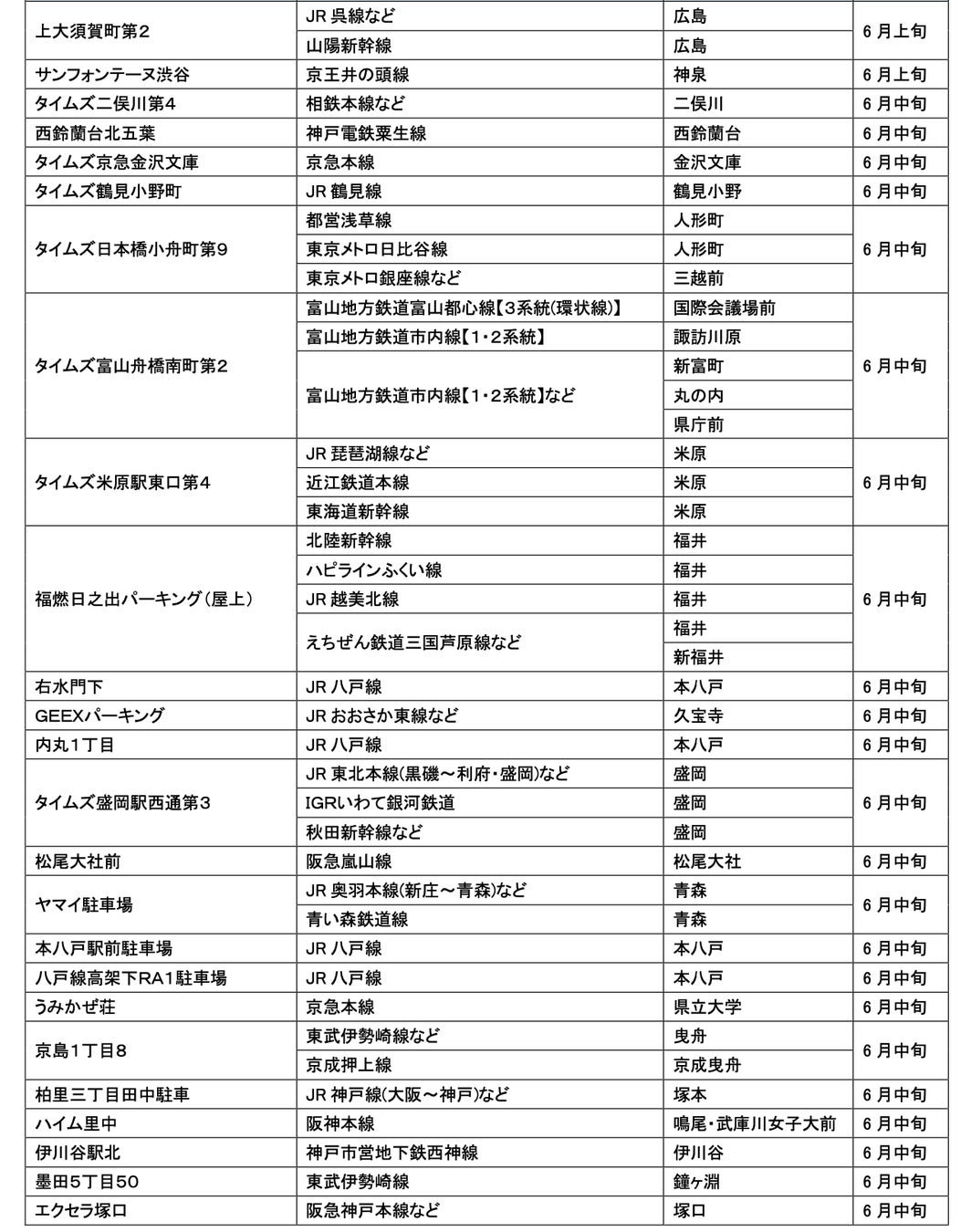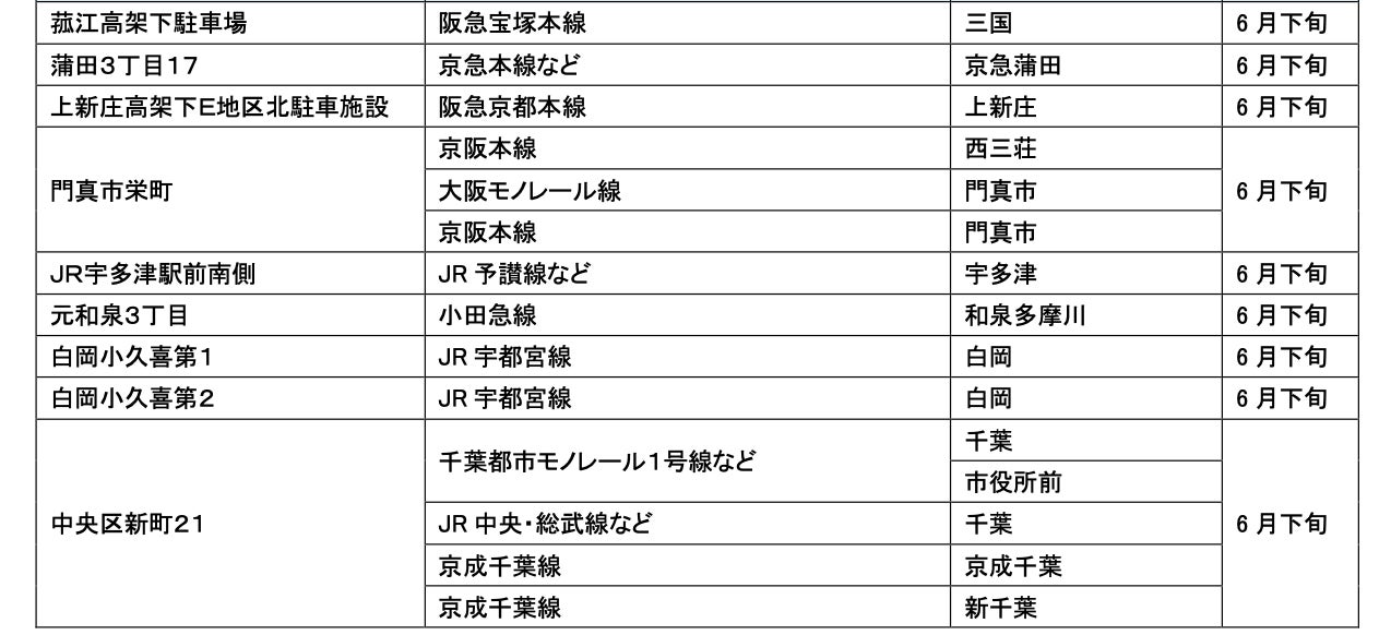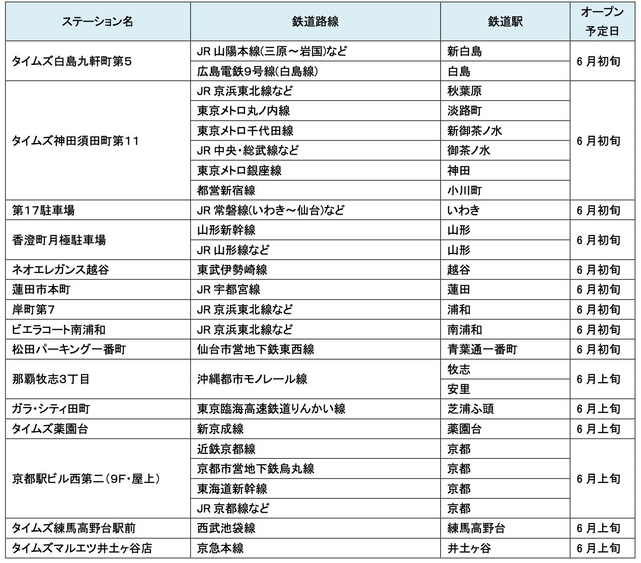 6月にオープンおよびオープン予定の「パーク&ライド」に適した駐車場は20件、「レール&カーシェア」に適したステーションは204件です。