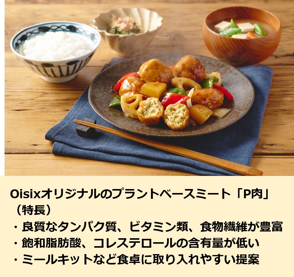 植物由来のタンパク質をお客様の食卓に手軽に取り入れやすいメニューでご提案することで、バランスの良い食生活をお届けしたいと考え、2022年12月よりオリジナルのプラントベースミート「P肉」使用のミールキットや餃子、ミートボールなど7品をOisix会員向けにテスト販売しご好評をいただきました。