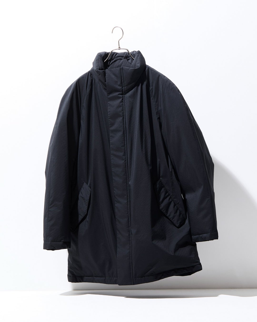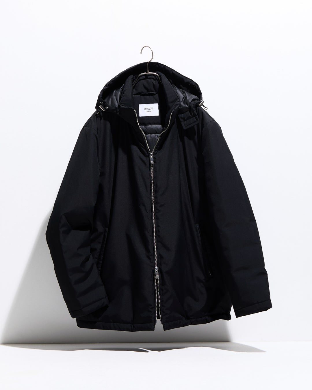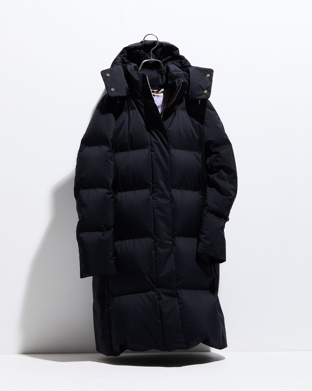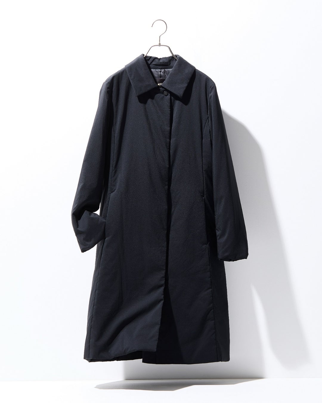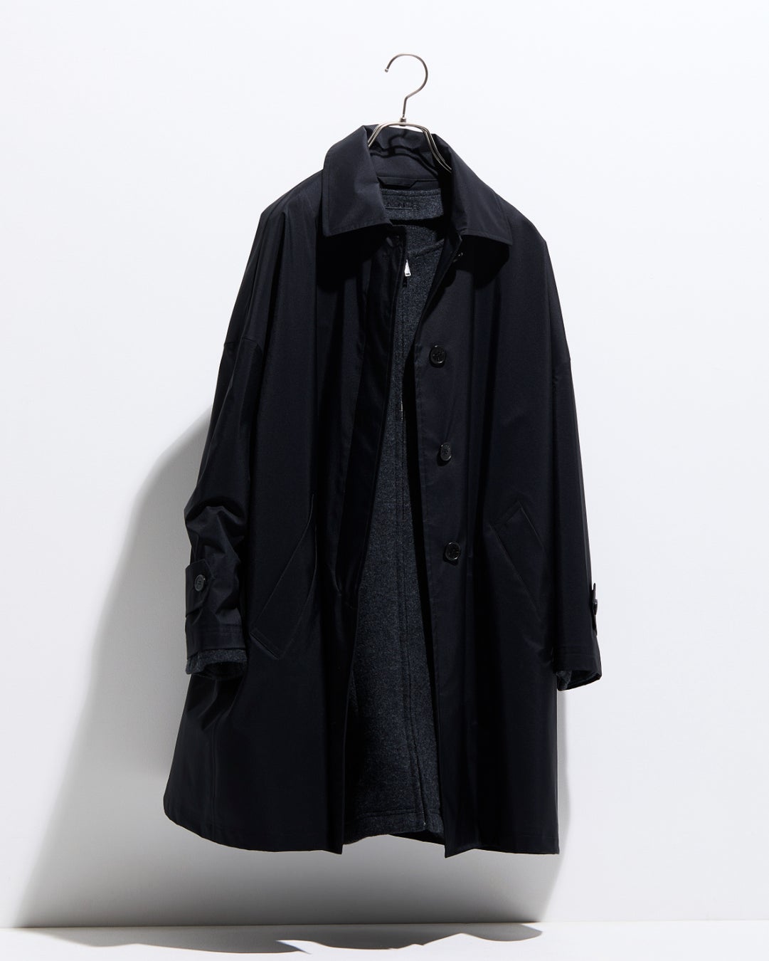 「BLACK OF BLACKs」のコート・アウターの多くに、裏面にフィルムを貼り合わせるラミネート加工を施すことによりはっ水性・透湿性・防風性などの機能性を付加した生地を使用。「マッキントッシュ ロンドン」(ウィメンズ)の定番コート『ロズリー』や「サンヨーコート」の『青森ダウン』などブランドの代表的なモデルに用いて、特別なコート・アウターを展開します。