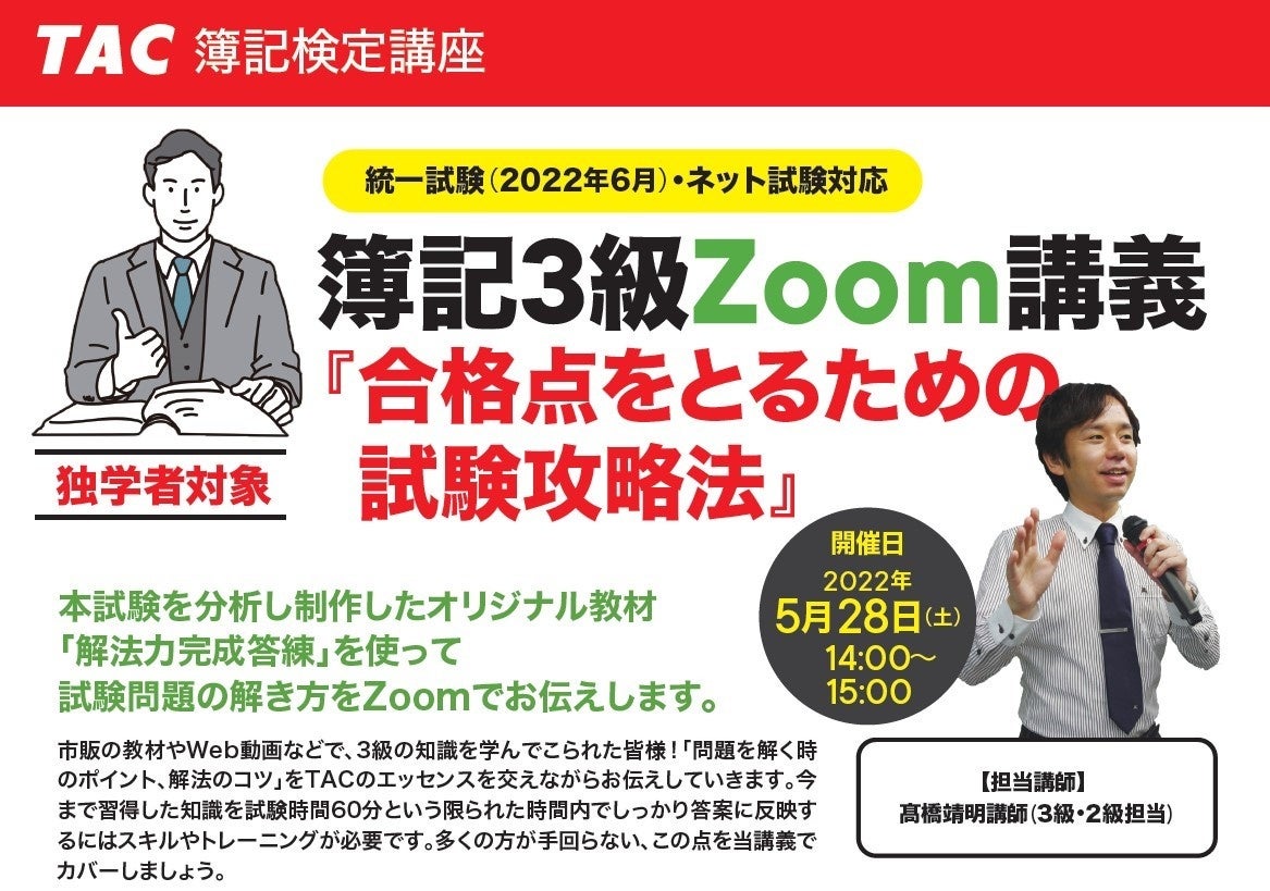 日商簿記検定試験3級対策で、独学者を対象に解法テクニックをZoomでお伝えする「合格するための試験攻略法」を5/28(土)に緊急開講!