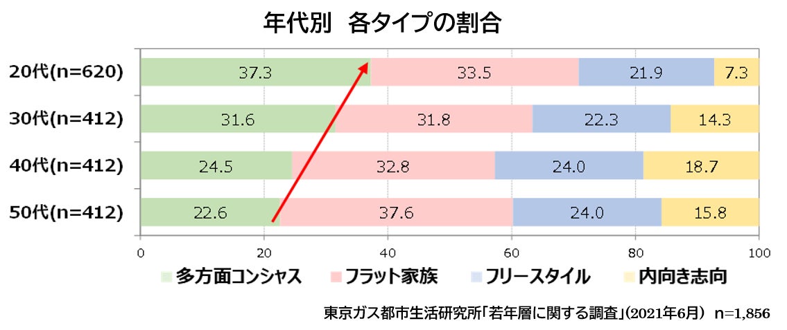 - 20代に最も多いのは、多方面との「つながり」を重視するタイプ!