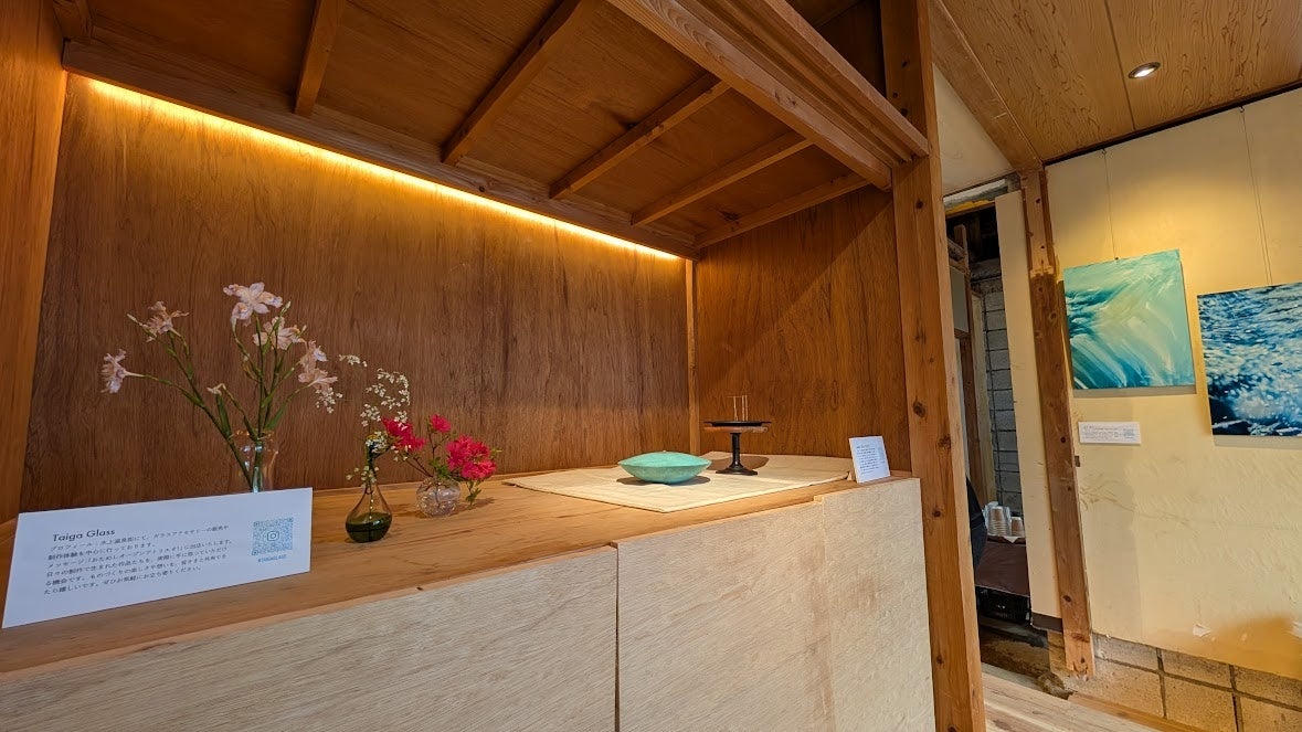 当日は、1日限定で「創り手」の櫻井園子さん、桑原早恵樹さん、akikoさんがそれぞれのアトリエを設え、ワークショップ、展示、販売を行いました。3名の共同作品の展示や、東大生による漆喰風塗料を使用した塗装体験ワークショップ、ブランド米「水月夜」を使用したお団子などが楽しめるカフェギャラリーも登場。また、旧ひがき寮の模型や「水上温泉街再生プロジェクト」のこれまでの歩みに関する展示も行われ、地元の方々や外国人観光客など、幅広い層のお客様にご来場いただきました。