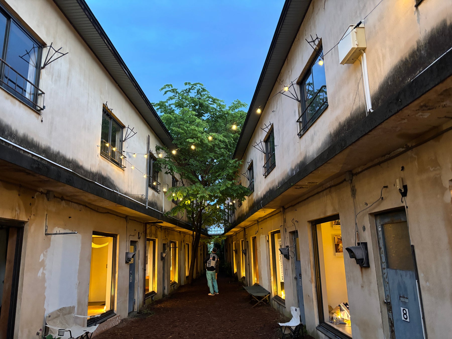 閉館した温泉旅館「一葉亭」の元従業員寮である「旧ひがき寮」の再活用の可能性を探るため、水上温泉街再生プロジェクトの一環として、生まれ変わらせようとしています。まるで南欧の裏路地のような、独特な建ち方と佇まいが印象的な「旧ひがき寮」の活用方法を、東大生や地元の方々とも連携をさせていただき、アトリエとして文化的な活動拠点とするべく、約1年前の2024年6月より「まるごとアトリエプロジェクト」が始動。アート・ものづくり・クラフト・アップサイクルなどをテーマにした温泉街の新しい拠点づくりを目指しています。