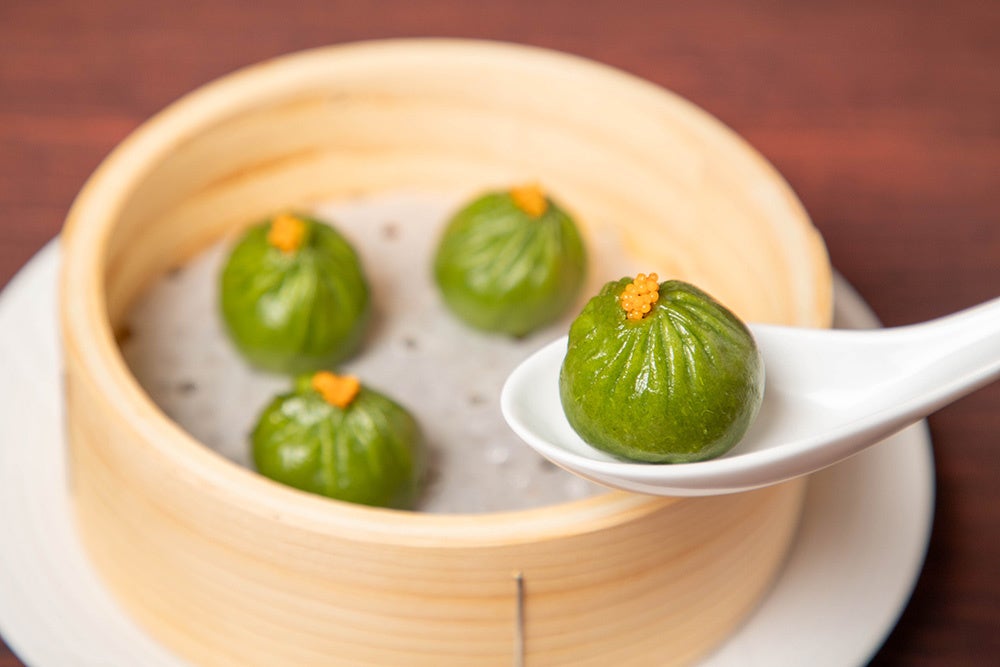 滋養があり疲労回復にもよいと言われるイラブ―(ウミヘビ)は、琉球王国の宮廷料理に使われていた高級食材です。長時間煮込み、ニガナの皮で包み小籠包に仕上げました。