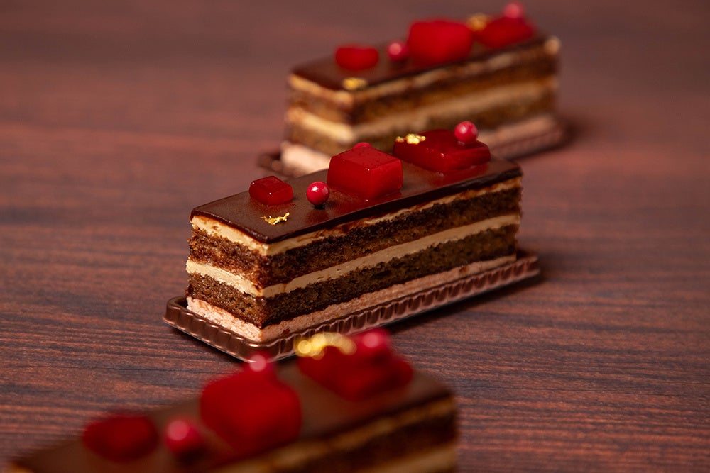 瀬底島で自家焙煎した香り豊かなコーヒーを、スポンジ生地とシロップにたっぷりと使用し、甘酸っぱいアセローラクリームと何層にも重ねたスイーツです。