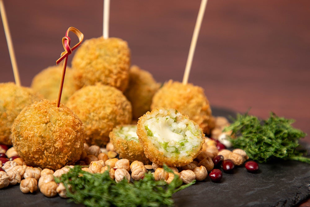 「宮古ブルー」と呼ばれる美しい宮古島の海で育った、ミネラルたっぷりのアーサをライスコロッケに。色と香りにこだわりました。