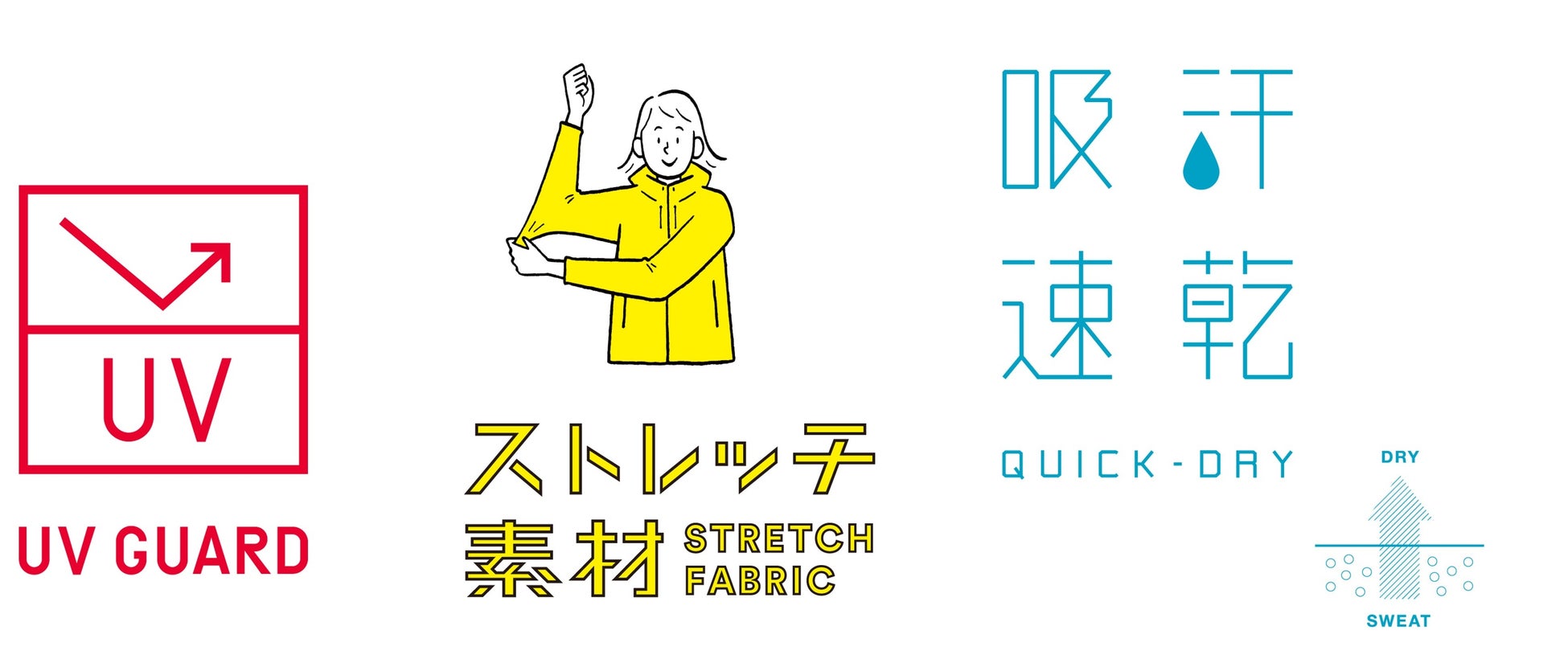 さらに、身体の動きに連動した伸縮性の高いストレッチ素材を採用しており、汗をかいても乾きやすい吸汗速乾生地で、服のベタつきを軽減します。ストレッチ素材で動きやすく、さらっとした快適な肌ざわりが続くので、快適な着心地です。また、耐塩素加工を施しているのでプールで着用しても生地が傷みにくく、長く着用していただけます。