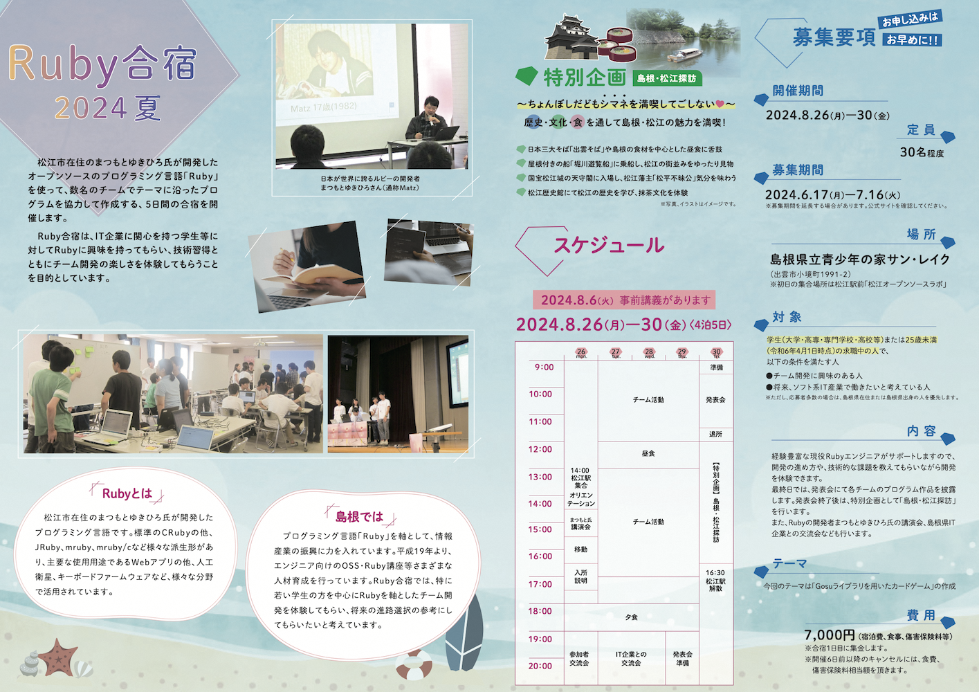 また、Ruby開発者まつもとゆきひろ氏の講演会、島根県内IT企業との交流会などを行います。