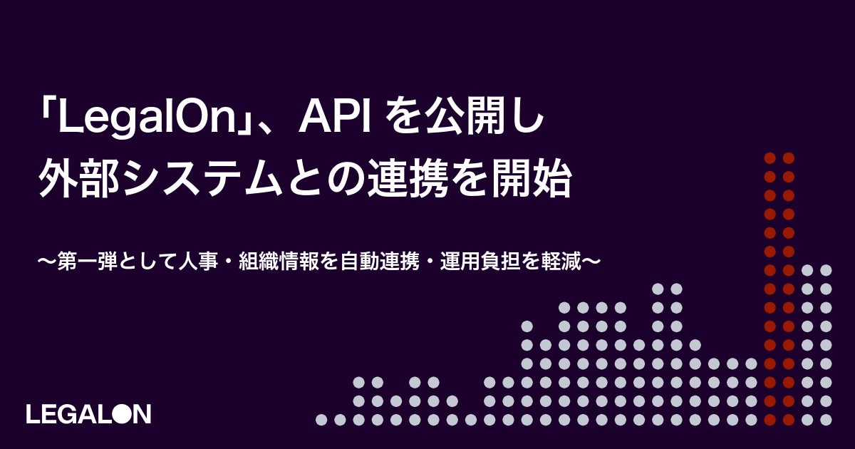 株式会社LegalOn Technologies(本社:東京都渋谷区、代表:代表取締役 執行役員・CEO 角田 望、以下:LegalOn Technologies)が提供する、法務特化型AIエージェント搭載のWorld Leading Legal AI「LegalOn」(https://www.legalontech.com/jp/)は、ユーザー情報および組織情報を外部システムから自動連携できるAPIの提供を、2026年2月16日より開始しました。