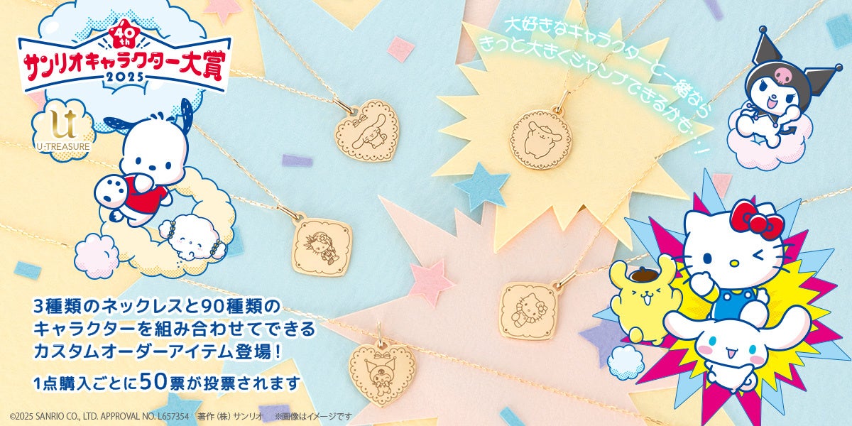 株式会社ユートレジャー(本社:東京都新宿区、代表取締役社長:青木 興一)は、株式会社サンリオが開催する人気投票イベント「2025年サンリオキャラクター大賞」とのコラボレーションアイテム「プレートネックレス」を2025年4月10日(木)~5月23日(金)の期間限定で予約受付を行います。
