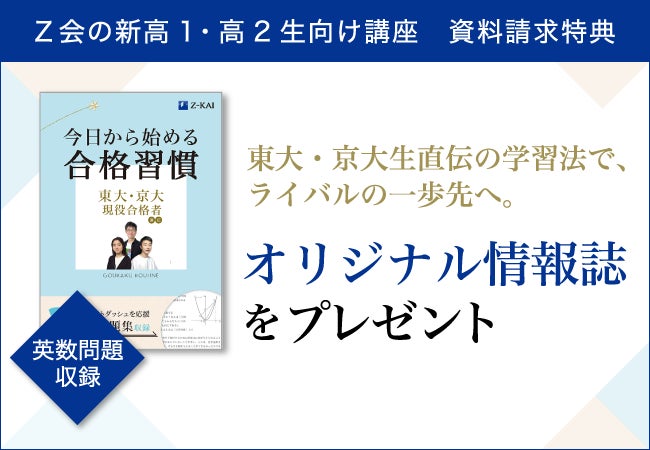 株式会社増進会ホールディングス(Z会グループ)のグループ会社である株式会社Z会は、【Z会の通信教育】において、2023年度の高1高2生向け、大学受験生向けの資料をご請求いただいた方に、学年別の学習冊子をプレゼントするキャンペーンを2022年11月28日(月)より開始しました。ぜひこの機会に資料をご請求ください。<2023年5月31日(水)までの期間限定・無料>