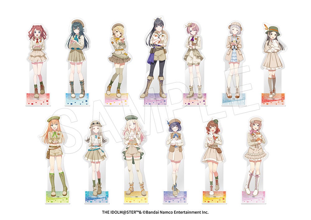 トップアイドルを目指すため、アイドル育成学校「初星学園」のアイドル科に通う総勢13名のアイドル候補生たちが、サファリルック風の衣装を身にまとい、うさぎやモルモット、ヒヨコなどの動物たちとふれあう描き下ろしイラストを使用した新作アイテムが多数登場!